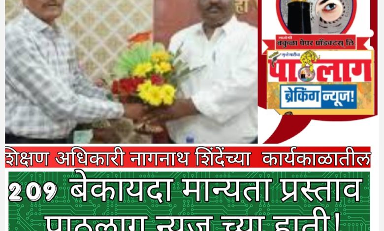 बीडच्या शिक्षण विभागाचा बट्ट्या बोळ वाजवणारे तत्कालीन वादग्रस्त शिक्षण अधिकारी नागनाथ शिंदे यांच्या कार्यकाळातील २०९ बेकायदेशीर मान्यतेचे प्रस्ताव पाठलाग न्यूज च्या हाती.