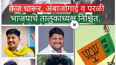 केज, परळी, धारूर व अंबाजोगाईतील भाजप तालुका अध्यक्ष निश्चित केवळ औपचारिक घोषणा बाकी. -परळीतून प्रा.डॉ.बिभीषण फड, अंबाजोगाईतून संजय गंभीरे, केजसाठी…
