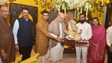 ‘वर्षा’ निवासस्थानी केंद्रीय गृहमंत्र्यांनी घेतले गणरायाचे दर्शन. मुंबई: केंद्रीय गृहमंत्री अमित शाह यांनी आज मुख्यमंत्र्यांच्या वर्षा निवासस्थानी भेट देत गणरायाचे…