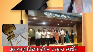 अंतर महाविध्यालयिन वक्तृत्व स्पर्धेत डाॅ.दिपक पाटील आयुर्वेद महाविद्यालयाच्या डाॅ.ऋतुजा मुंडेने पटकावले दुसर्या क्रमांकाचे बक्षीस!