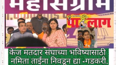 केज मतदार संघाच्या विकासात्मक भविष्यासाठी नमिता ताई मुंदडाना निवडून द्या — नितीन गडकरी. तुतारीने आपला पराभव केला आता तुतारीचा पराभव…