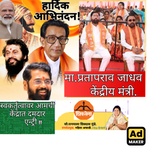 शिवसेना(शिंदे गटाचे) बुलढाण्याचे खासदार प्रतापराव गणपतराव जाधव यांनीकेंद्रीय आरोग्य आणि कुटुंब कल्याण मंत्रालयात राज्यमंत्री म्हणून पदभार स्वीकारला.
