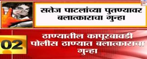 शिक्षण महर्षी डॉ. डी. वाय पाटील यांचा नातू आणि मा. गृहराज्यमंत्री सतेज पाटील यांच्या पुतण्यावर ठाण्यात बलात्काराचा गुन्हा दाखल.