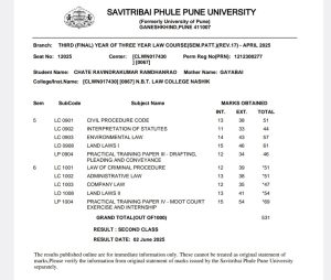 प्रतिनिधी/ केज: केज तालुक्यातील तांबवा येथील रवींद्र कुमार चाटे हा विधी व न्याय अभ्यासक्रमाच्या अंतिम वर्षात घेण्यात आलेल्या परीक्षेत दुसऱ्या श्रेणीत यशस्वी पास झाला असून, पुणे विद्यापीठाने घेतलेल्या विधी परीक्षेत त्यांने द्वितीय श्रेणी मिळवल्याबद्दल तांबवा पंचक्रोशीतील तमाम समर्थकानी त्याचे अभिनंदन केले आहे. रवींद्र कुमार चाटे हा विधी व न्याय अभ्यासक्रमासाठी नाशिक येथील पुणे युनिव्हर्सिटी अंतर्गत असलेल्या एन बी टी विधी महाविद्यालयात तीन वर्षांच्या अभ्यासक्रमासाठी प्रवेशित झाला होता. अतिशय कष्टाळू व अभ्यासू विद्यार्थी म्हणून प्रस्तुत महाविद्यालयात त्याची गनणा झाली होती. रवींद्र कुमार चे वडील न्यायालयात हेड क्लार्क असल्यामुळे त्याचेवर विधी, न्याय,कायदा वकिलीचा चांगलाच पगडा पडलेला असल्यामुळे लहानपणापासूनच त्याला न्यायव्यवस्थेविषयी आवड निर्माण झालेली होती. संगणक शास्त्राची पदवी घेतल्यानंतर रवींद्र कुमार चाटे याने नाशिक येथील एनबीटी विधी महाविद्यालयात त्यांनी प्रवेश घेतला आणि तीन वर्षांच्या यशस्वी अभ्यासक्रमानंतर त्यांनी चांगल्या गुणांनी यश संपादन करून वकिलीची पदवी प्राप्त केली. आपल्या पुढील कार्यकाळात वकिलीच्या माध्यमातून ग्रामीण भागातील अन्यायग्रस्तांना न्याय देण्याचा मानस रवींद्र चाटे याने पाठलाग न्यूजशी बोलताना व्यक्त केला. प्रस्तुत यशाबद्दल त्याने आपले सेवानिवृत्त वडील रामधन चाटे, आई व महाविद्यालयातील सर्व गुरुजनांच्या मार्गदर्शनाबद्दल आभार व्यक्त केले.