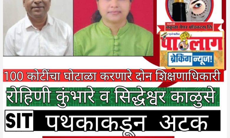 शालार्थ आयडी घोटाळ्यात 100 कोटींचा भ्रष्टाचार करणारे प्राथमिकचे शिक्षणाधिकारी सिद्धेश्वर काळुसे आणि माध्यमिक शिक्षणाधिकारी रोहिणी कुंभार यांना पोलिसांच्या SIT पथकाकडून अटक; राज्यस्तरीय ‘एसआयटी’ची कारवाई.