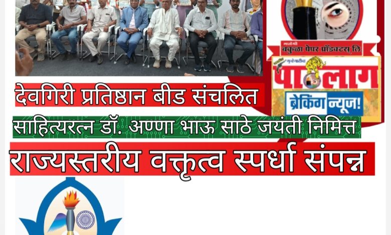 बीड/ वृत्तसेवा : साहित्यरत्न डॉ. अण्णा भाऊ साठे यांच्या १०५ व्या जयंतीनिमित्त देवगिरी प्रतिष्ठान, बीड संचलित तुलसी समूह यांच्या वतीने आयोजित राज्यस्तरीय शालेय व महाविद्यालयीन वक्तृत्व स्पर्धा बीड येथील तुलसी संगणकशास्त्र व माहिती तंत्रज्ञान महाविद्यालयात रविवारी (३ ऑगस्ट) रोजी उत्साहात पार पडली. स्पर्धेचे उद्घाटन छत्रपती संभाजीनगर महानगरपालिकेचे उपायुक्त रवींद्र जोगदंड यांच्या हस्ते करण्यात आले. उद्घाटनप्रसंगी त्यांनी डॉ. साठे यांच्या कार्याचा मागोवा घेत विद्यार्थ्यांना प्रेरणादायी संदेश दिला. स्पर्धा कार्यक्रमाच्या अध्यक्षस्थानी तुलसी समूहाचे सर्वेसर्वा प्रा. प्रदीप रोडे होते, तर प्रमुख पाहुणे म्हणून डॉ. मनोहर सिरसाट, मराठवाडा शिक्षक संघाचे राजकुमार कदम, उत्तम अंभोरे, रामकिशन जोगदंड, राम गायकवाड, अर्जुन राठोड, डॉ. सुनील जोंधळे आदी उपस्थित होते. स्पर्धेत राज्यभरातून शालेय आणि महाविद्यालयीन गटांतील १५४ विद्यार्थ्यांनी सहभाग घेतला. स्पर्धेचे परीक्षण प्रा. डॉ. पांडुरंग सुतार, डॉ. चंद्रकांत साळवे, शरद सदाफुले, डॉ. नामदेव शिनगारे आणि प्रा. महादेव जगताप यांनी केले. स्पर्धकाची भाषाशैली, सादरीकरण, विषय समज व समारोप या मूल्यांकनावर आधारित स्पर्धकाचे परीक्षण करण्यात आले. या उपक्रमाचे प्रास्ताविक. प्रा. डी. जी. निकाळजे यांनी केले. सूत्रसंचालन प्रा. अंकुश कोरडे व प्रा. किशोर वाघमारे, तर आभार प्रदर्शन डॉ. विकास वाघमारे यांनी केले. देवगिरी प्रतिष्ठान गेली १६ वर्षे सातत्याने ही स्पर्धा आयोजित करत असून, विद्यार्थ्यांमध्ये विचारप्रवृत्ती, सृजनशीलता आणि समाजप्रबोधनाची जाणीव निर्माण होणे, हाच या स्पर्धामागील उद्देश असल्याचे प्रा. प्रदीप रोडे यांनी आपल्या अध्यक्षीय भाषणातून सांगितले. स्पर्धकांसाठी अल्प- उपहार व भोजनाची विनामूल्य व्यवस्था करण्यात आली होती. कार्यक्रमास शिक्षक, विद्यार्थी आणि नागरिक मोठ्या संख्येने उपस्थित होते. प्रथम क्रमांकः मिथुन माने (सातारा) १०,०००/, द्वितीयः ऋतुजा शिवदास मुंडे ( डॉ. दीपक पाटील आयुर्वेदिक व मेडिकल कॉलेज,कोल्हापूर) ७,०००/, तृतीयः मोहिनी पायझम (माजलगाव) – ५,०००/, कनिष्ठ गटात, प्रथम क्रमांकः प्रणाली धस (बार्शी) ७,०००/, द्वितीयः आस्था सोहनी (बीड) ५,०००/, तृतीयः दिशा मुंगळे (लातूर) – ३,०००/-. दोन्ही गटांतील तीन-तीन स्पर्धकांना प्रत्येकी एक हजार चे उत्तेजनार्थ पारितोषिक देखील देण्यात आले.