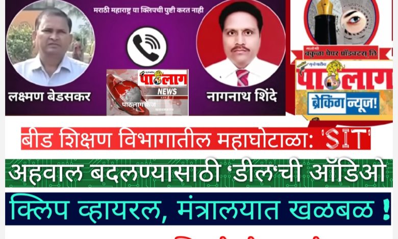 ‘एसआयटी’ अहवाल बदलण्यासाठी ‘डील’चे बोलणे! व्हायरल झालेल्या ऑडिओ क्लिपमध्ये बीड जिल्हा परिषदेचे केजचे तत्कालीन वादग्रस्त गटशिक्षणाधिकारी लक्ष्मण बेडस्कर आणि बीडचे माध्यमिक शिक्षण विभागाचे माजी शिक्षणाधिकारी नागनाथ शिंदे यांच्या आवाजातील खळबळ जनक आणि शिक्षण विभागाची लक्तरे वेशीवर टांगणारा संवाद ऐकू येत आहे. यात, बीड जिल्हा परिषदेचे प्राथमिक विभागाचे शिक्षणाधिकारी भगवान फुलारी यांच्या विरोधात सुरू असलेल्या ‘एसआयटी’ चौकशीचा अहवाल आपल्या बाजूने कसा फिरवायचा, यासाठी काय ‘व्यवस्था’ करायची, यावर सविस्तर चर्चा सुरू आहे. संवादात, नागनाथ शिंदे हे लक्ष्मण बेडस्कर यांना ‘एसआयटी’च्या प्रमुखांना ‘मॅनेज’ करण्याची आणि अहवाल अनुकूल करून घेण्याची ‘गुरुकिल्ली’ सांगताना ऐकू येत आहेत. अहवाल सकारात्मक येण्यासाठी ‘हात रिकामा सोडावा लागेल’ असे स्पष्ट निर्देश देताना, संवादातून ऐकण्यास मिळत आहे. नागनाथ शिंदे यांनी स्वतःच्या भ्रष्टाचाराचा अहवाल पॉझिटिव्ह करून घेण्यासाठी यापूर्वीही एका महत्त्वाच्या राजकीय व्यक्तीच्या पीएकडे अहवालासाठी स्वतःच्या खिशातून ५ लाख आणि नंतर २ लाख रुपये दिल्याचे धक्कादायक विधान केले आहे. “एकदा का निगेटिव्ह अहवाल आयुक्तांच्या तडाक्यात गेला, की काहीच करता येणार नाही,” असे म्हणत अहवाल बदलून घेण्याची तातडीची गरज त्यांनी सदरच्या व्हायरल ऑडिओ क्लिप मधून अधोरेखित केली आहे. बोगस शिक्षक आणि शालार्थ आयडीचा महाघोटाळ्याच्या प्रकरणाच्या चौकशीत २०१२ पासून झालेल्या शिक्षक नेमणुका आणि बोगस शिक्षकांना मिळालेले शालार्थ आयडी हे मुख्य तपासण्याचे मुद्दे आहेत. या संवादात, पूर्वीच्या आपल्याशी संबंधित असलेल्या चौकशीत ९०० फाईल्स तपासल्या गेल्या आणि सदरच्या फाइल्स त्रुटीत आणि नियमात नसताना सुद्धा त्या ‘निरंक’ निघाल्याचा दावा नागनाथ शिंदे यांनी केला असून,आताच्या ‘डील’मुळे पूर्वीच्या चौकशांवरही प्रश्नचिन्ह निर्माण झाले आहे. बीड जिल्ह्याच्या शिक्षण क्षेत्रातील गैरप्रकार आणि भ्रष्टाचार उघड करणाऱ्यांना देखील सदरील वायरल क्लिप मधून उभयतांनी लक्ष केल्याचे दिसून येत आहे. या महाघोट्याळ्याचा पर्दाफाश करणारे आरटीआय कार्यकर्ते सादिक इनामदार यांच्यावर कारवाई करून त्यांना बदनाम करण्याचे प्रयत्नही याच अधिकाऱ्यांकडून सुरू असल्याचा आरोप समोर येत आहे. यामुळे, भ्रष्टाचार करणाऱ्यांना पाठीशी घालण्याचा आणि तो उघड करणाऱ्यांना दाबण्याचा प्रयत्न सुरू असल्याचे स्पष्ट होत आहे. बीडचे तत्कालीन माध्यमिक शिक्षणाधिकारी नागनाथ शिंदे आणि केज चे निलंबित वादग्रस्त गट शिक्षणाधिकारी लक्ष्मण बेडस्कर या दोघांच्या संवादाची ऑडिओ क्लिप वायरल झाल्या