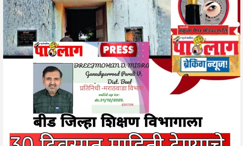 बीड जिल्हा परिषदेच्या शिक्षण विभागाला ३० दिवसांत माहिती देण्याचे राज्य माहिती आयोगाचे आदेश.